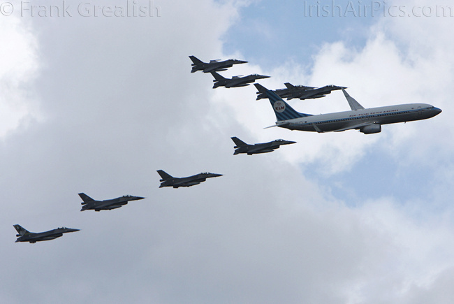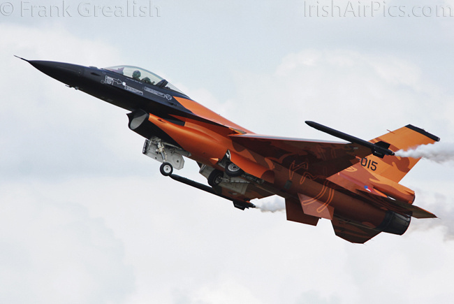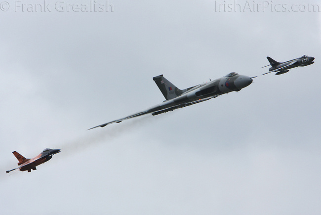 There were other special formations flown on Saturday, 8 of the F-16s from the base attack flew in formation with the retro painted KLM Boeing 737-800 that flew in from Schiphol with 50 sick and terminally ill children on board. The other special formation consisted of the RNLAF solo display F-16, the Hawker Hunter Foundation Hunter F6 and the Vulcan to the Sky Vulcan XH558.