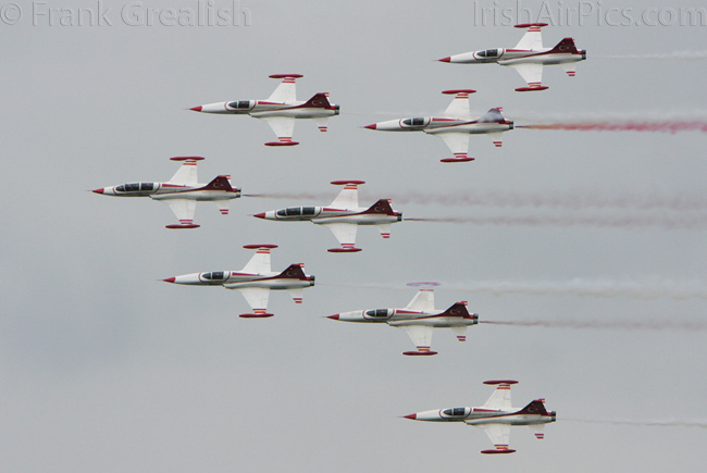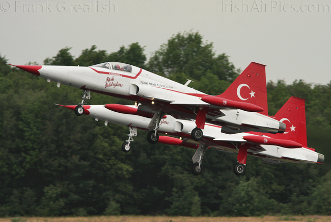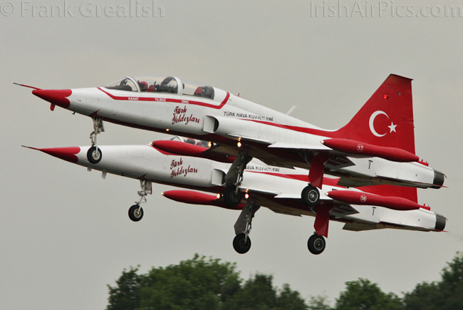 Other displays if interest consisted of the Marche Verte (Green March) display team from the Royal Moroccan Air Force who took off with the aircraft tied together, an Italian Navy NHI NH-90 NFH (NATO Frigate Helicopter) complete with Paris Air Salon serial number, Polish Air Force Mikoyan-Gurevich MiG-29UB painted with a huge 1ELT badge on the aircraft topside and the Turkish Stars with their 8 brightly painted Northrop NF-5 Freedom Fighters.